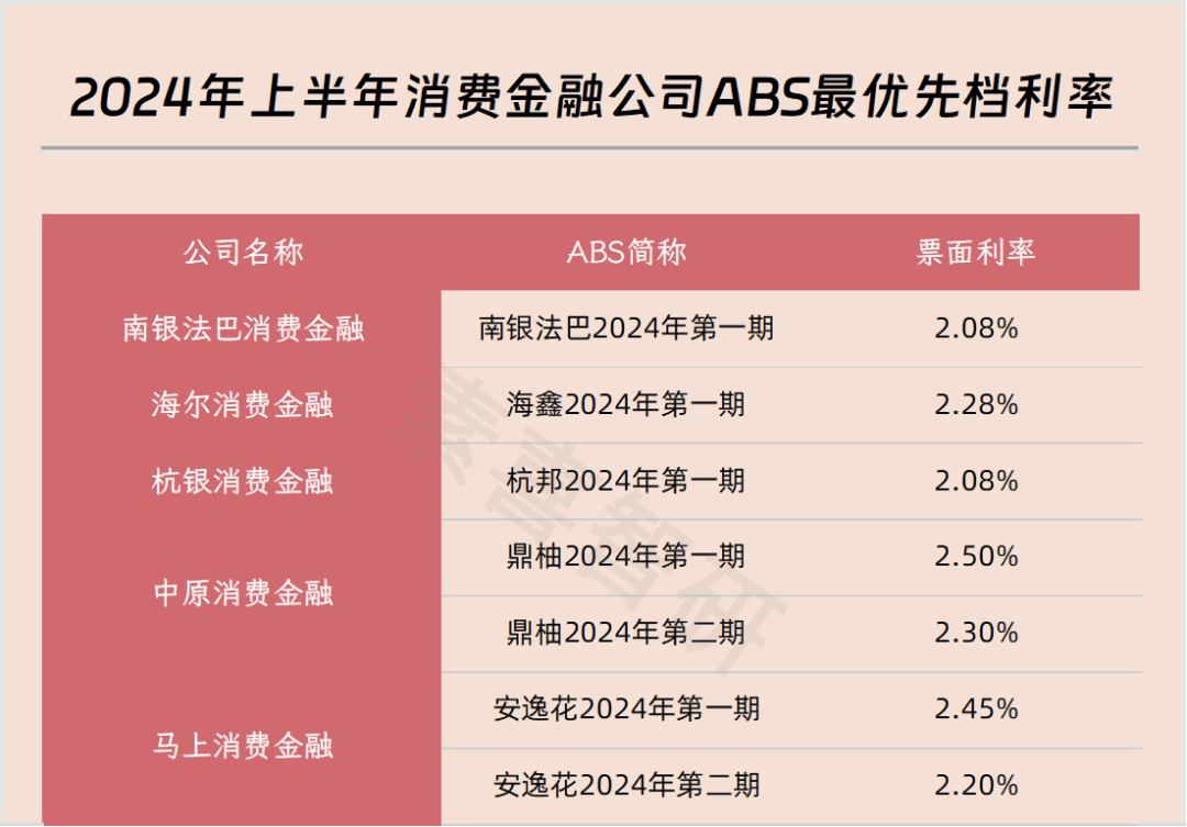 (备注:消金ABS优先档不唯一,故选取“最优先档”反映最低利率)
